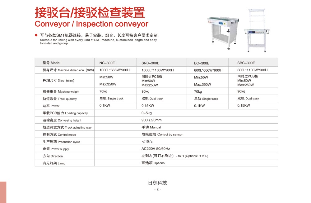 可與各款SMT機(jī)器連接,易于安裝、組合、長(zhǎng)度可按客戶(hù)要求定制。
