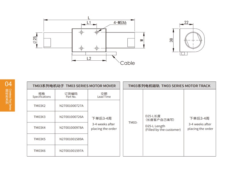 | TM 24系列圓柱形直線電機(jī)參數(shù)PARAMETERS OF TM 24 SERIES MOTOR | |||||||