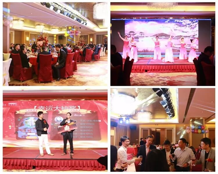 大會結束后,日東科技供應商答謝晚宴在寶利來酒店宴會廳舉行,總經理林曉新為2019年日東科技十大優(yōu)秀供應商頒獎。晚宴上還準備了精彩的舞蹈表演和激動人心的抽獎環(huán)節(jié),在2020新年即將到來之際,大家歡聚一堂,推杯換盞,其樂融融!