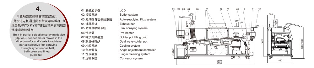 ●PC+PLC控制系統, Windows 7操作系統, 中/英文操作界面, 工藝曲線/數據自動存儲功能, 助焊劑液面過低過